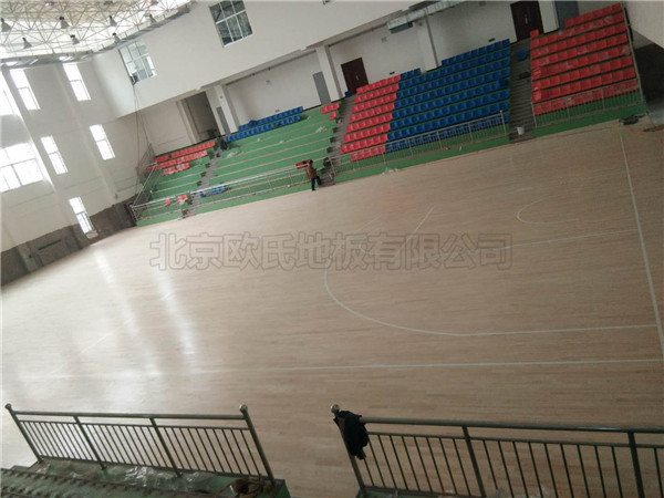 北京歐氏地板有限公司承接延安吳起高中籃球木地板鋪設(shè)工程,該項目負(fù)責(zé)人選擇的是主輔龍骨結(jié)構(gòu),鋪設(shè)面積703平米,現(xiàn)已鋪設(shè)完成結(jié)束驗收.